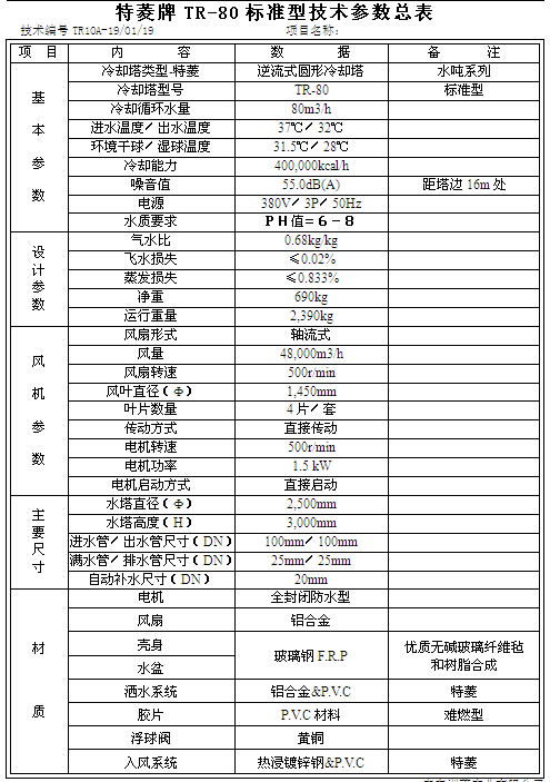 特菱TR系列80噸冷卻塔的技術(shù)特點(diǎn):
