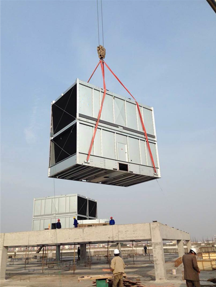 惠州東江環(huán)保橫流方形冷卻塔安裝 廣東特菱空調(diào)(http://cnqsk.com)方形橫流式玻璃鋼冷卻塔結(jié)構(gòu)特點: (1)擋板:玻璃鋼材質(zhì),表面光滑美觀,耐腐蝕,防老化。 (2)填料:改性聚氯